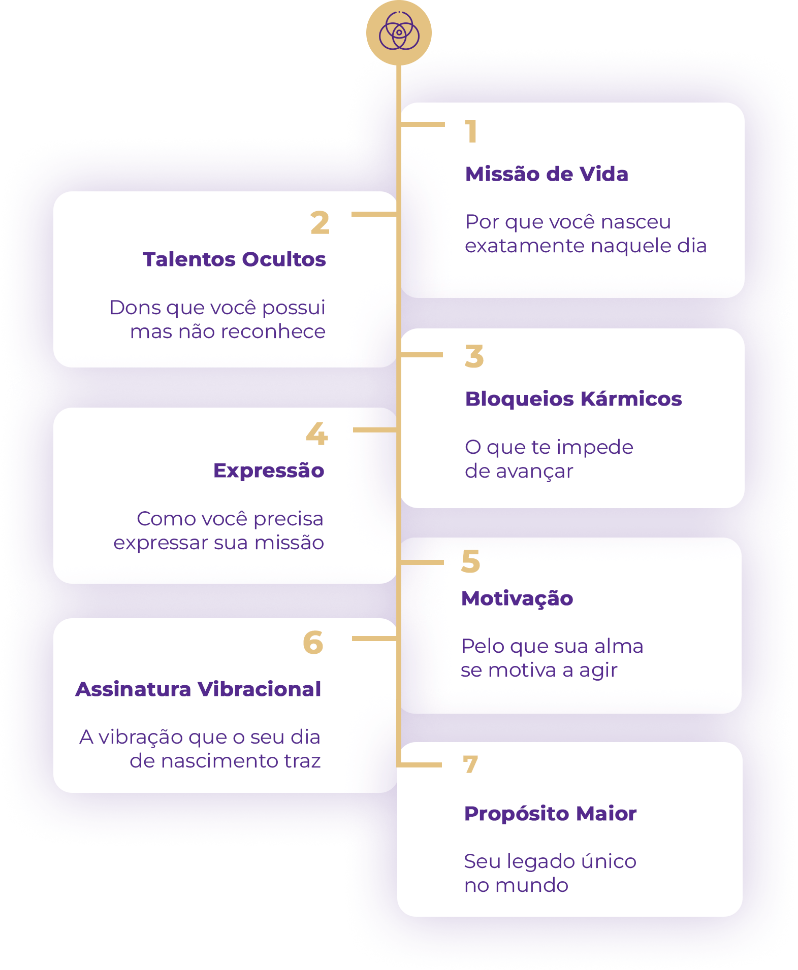 O Mapa de Nascimento usa a tecnologia sagrada da Numerologia Cabalística para decodificar os 7 níveis da sua programação de alma: